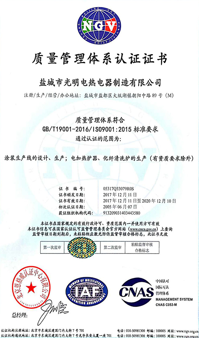 鹽城市光明電熱電器制造有限公司是集科研、設計、制造、安裝調試與咨詢服務為一體的實業制造公司。 公司座落在美麗的黃海之濱-江蘇鹽城,西臨風景優美的大縱湖旅游渡假區,環境優美,地理位置方便,以及悠久的歷史文化底蘊,帶給了光明人無限創意和追求。 公司目前主要生產各種電加熱器系列、轉動車、升降臺系列、涂裝生產線等,產品適用于汽車、化纖、紡織、冶金、石油、化工、電子、海洋工程、皮革機械、塑料機械、電纜機械、食品機械、橡膠機械、家用電器等行業。公司以其先進的技術、優質的產品、合理的價格,使產品銷售國內外,贏得了眾多客戶的贊許,并與一百多個國內外企業一直保持長期友好的合作關系。我公司可根據客戶使用與現場安裝的需要,設計、制造特殊規格的上述設備。展望未來,光明人將會以更飽滿的熱情、奮發開拓、努力進取,因為我們深知光明的今天比昨天好,光明的明天會比今天更美好!